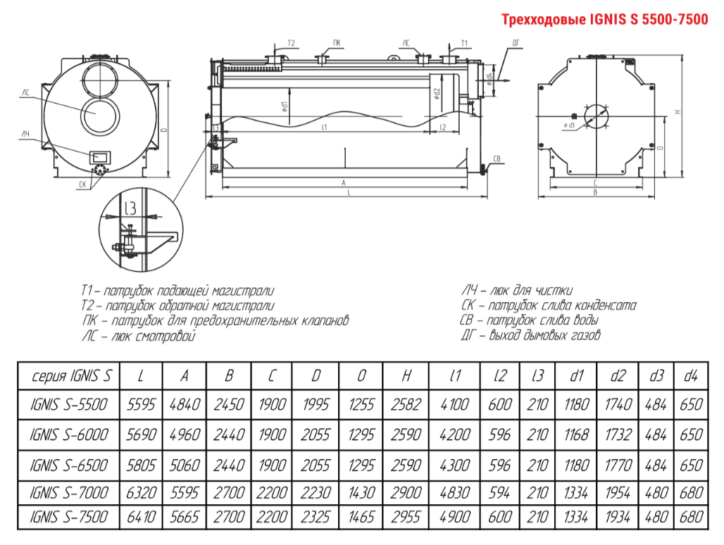 Технические характеристики водогрейного трёхходового котла ARCUS IGNIS S-7500